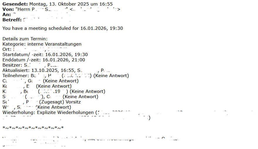 - Es wird der Terminerinnerung eine vollständige Liste der Vor- und Nach-Namen aller Teilnehmer zugefügt
