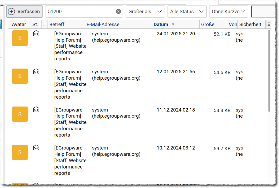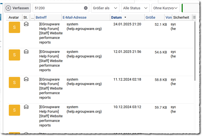 TB macht auch KB und in der EGw-Spalte Größe wird ebenfalls KB (für die kleineren Mails) verwendet.