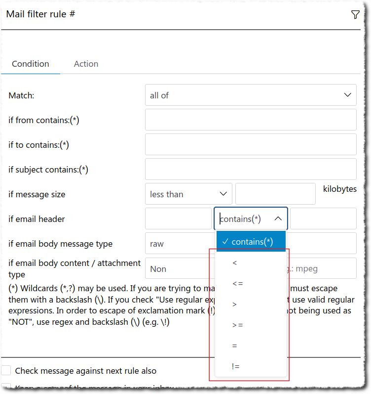 For example, ‘X-Spam-Score’ can be used to evaluate the spam rating of an email and filter it into a subfolder once it reaches a certain value.