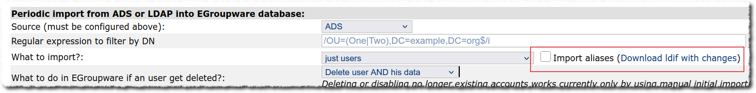 - LDAP/ADS: allow to import aliases from AD or LDAP, incl. download of an .ldif file to first set them in the directory